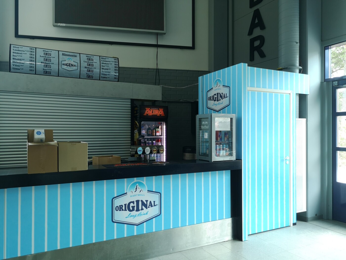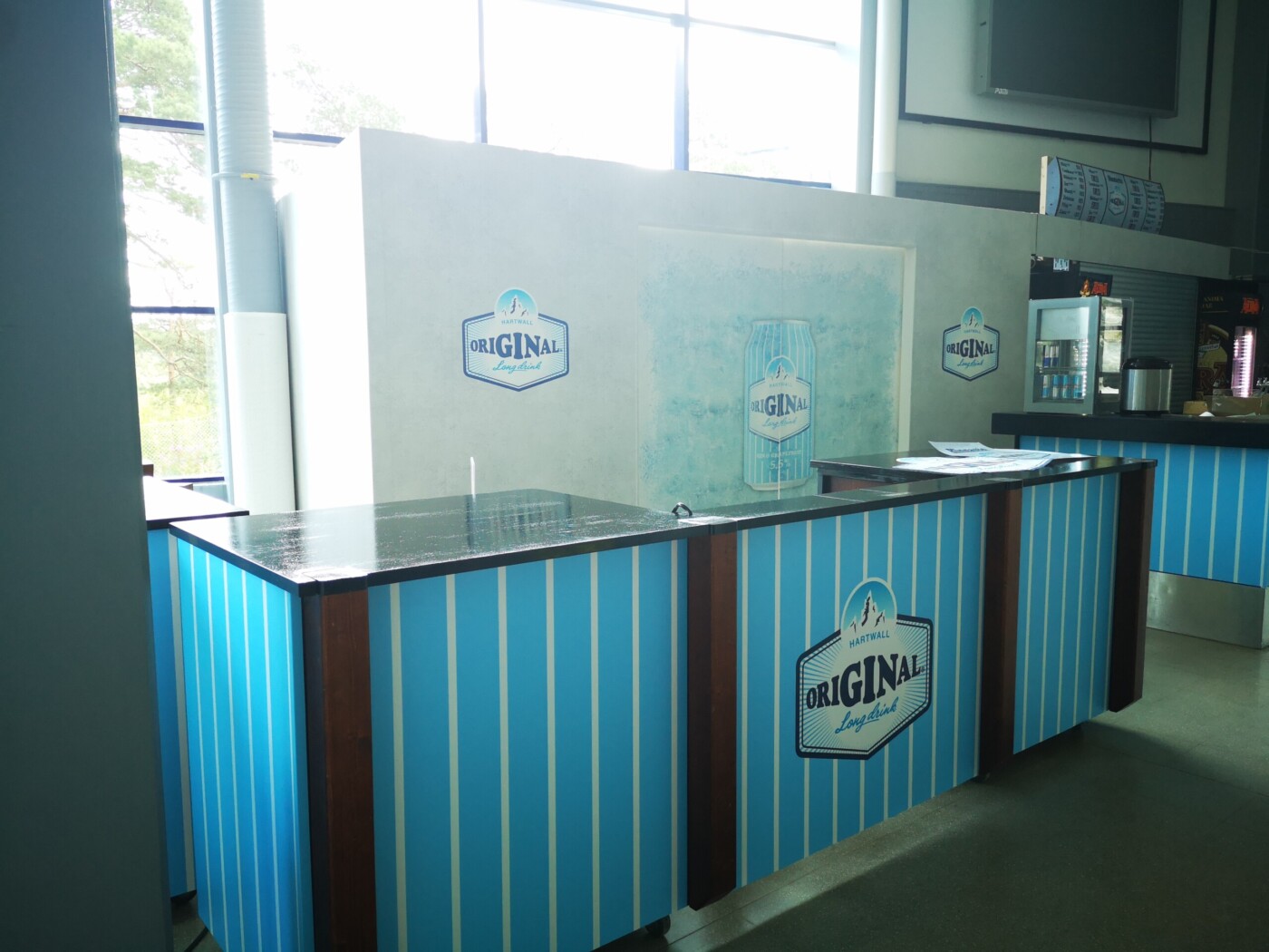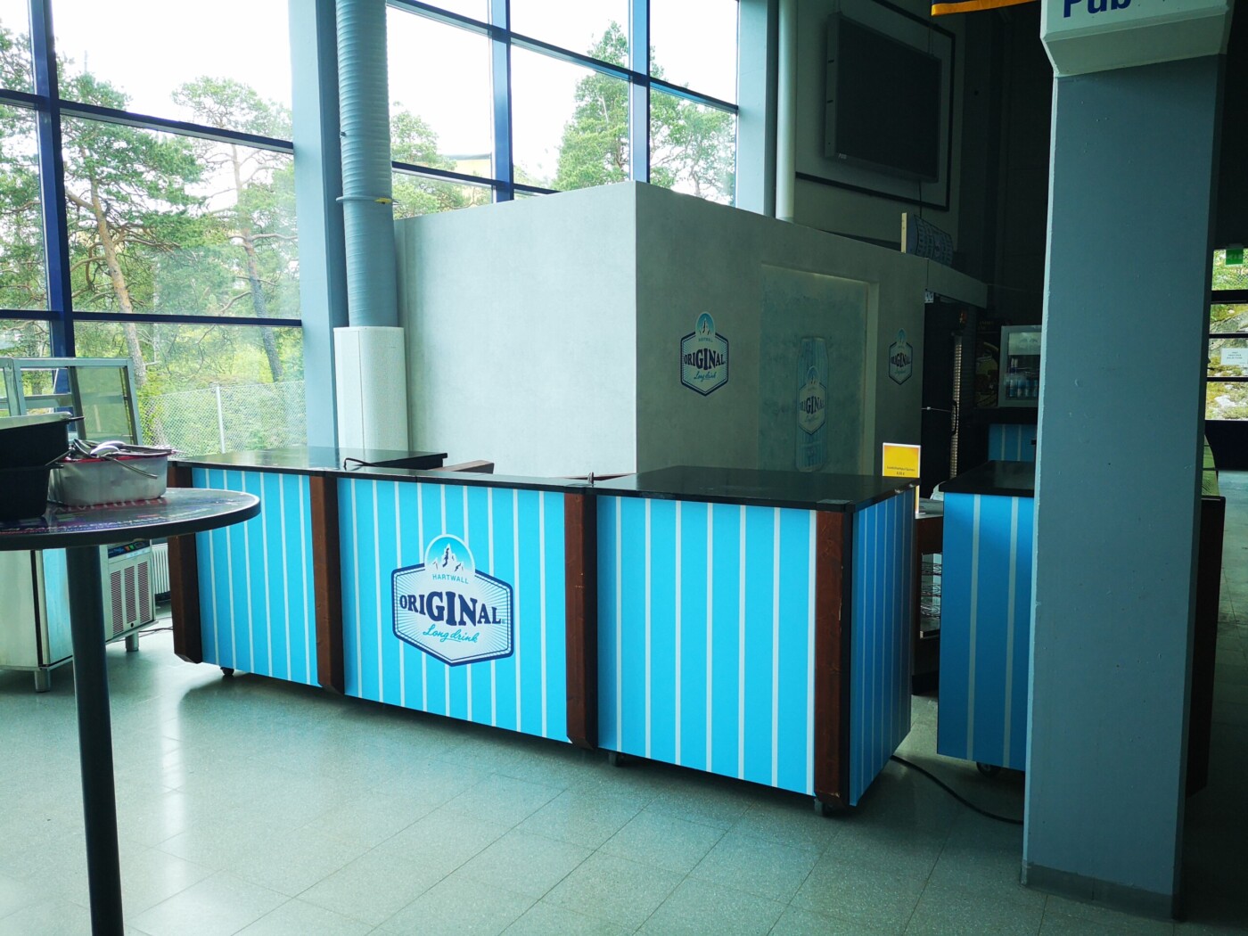 Päätyravintola brändättiin Hartwall:in legendaarisella tuotteella Original Long Drinkillä paremmin tunnettuna sinä ainoana oikeana lonkerona. Ravintola sai ilmeensä lonkeron omasta brändimaailmasta. Tunnistettava raitakuviointi jatkuu läpi koko ravintolatiskin missään katkeamatta. Tässä nähdään myös miten eri materiaaleja yhdistelemällä saadaan loistava kokonaisuus. Värit säilyvät samoina vaikka materiaalit vaihtuvat seinäteipistä tapettiin ja takaisin.