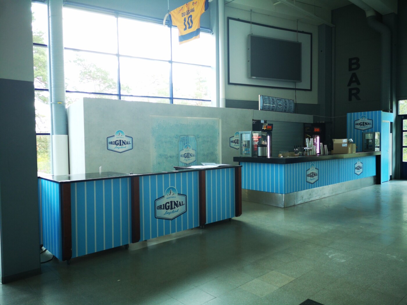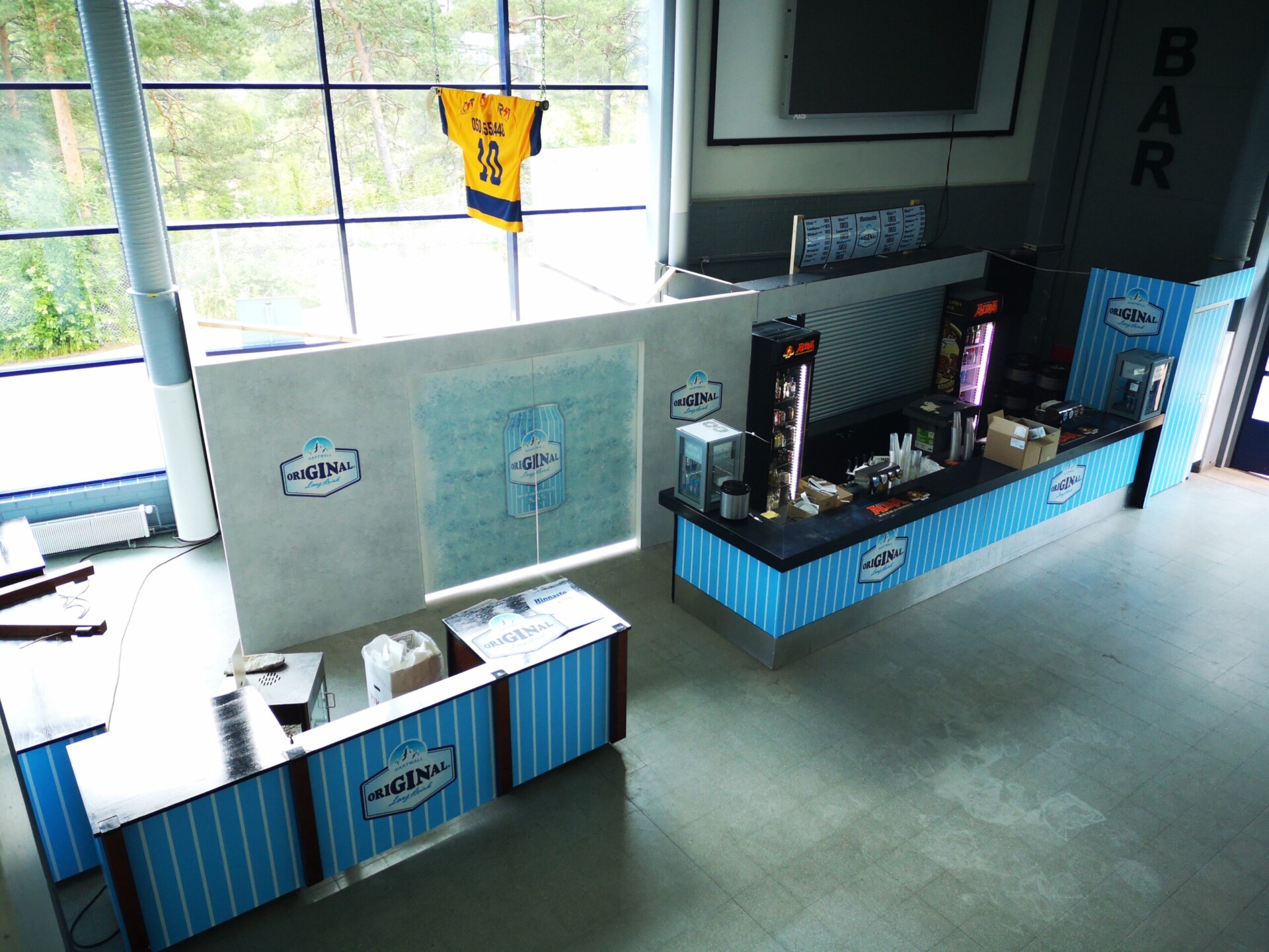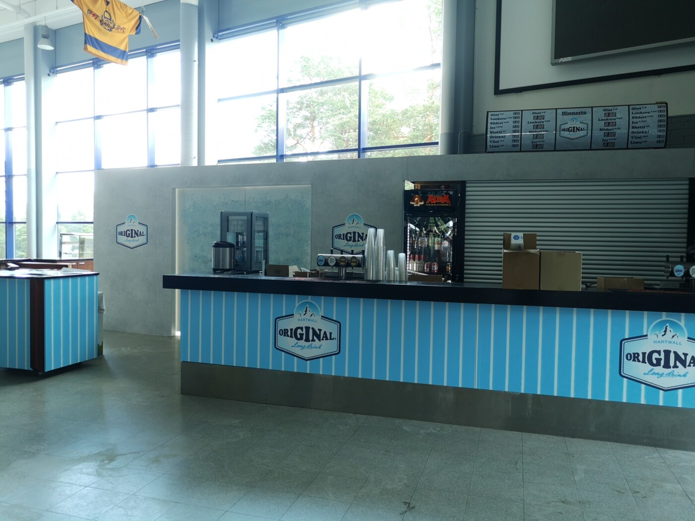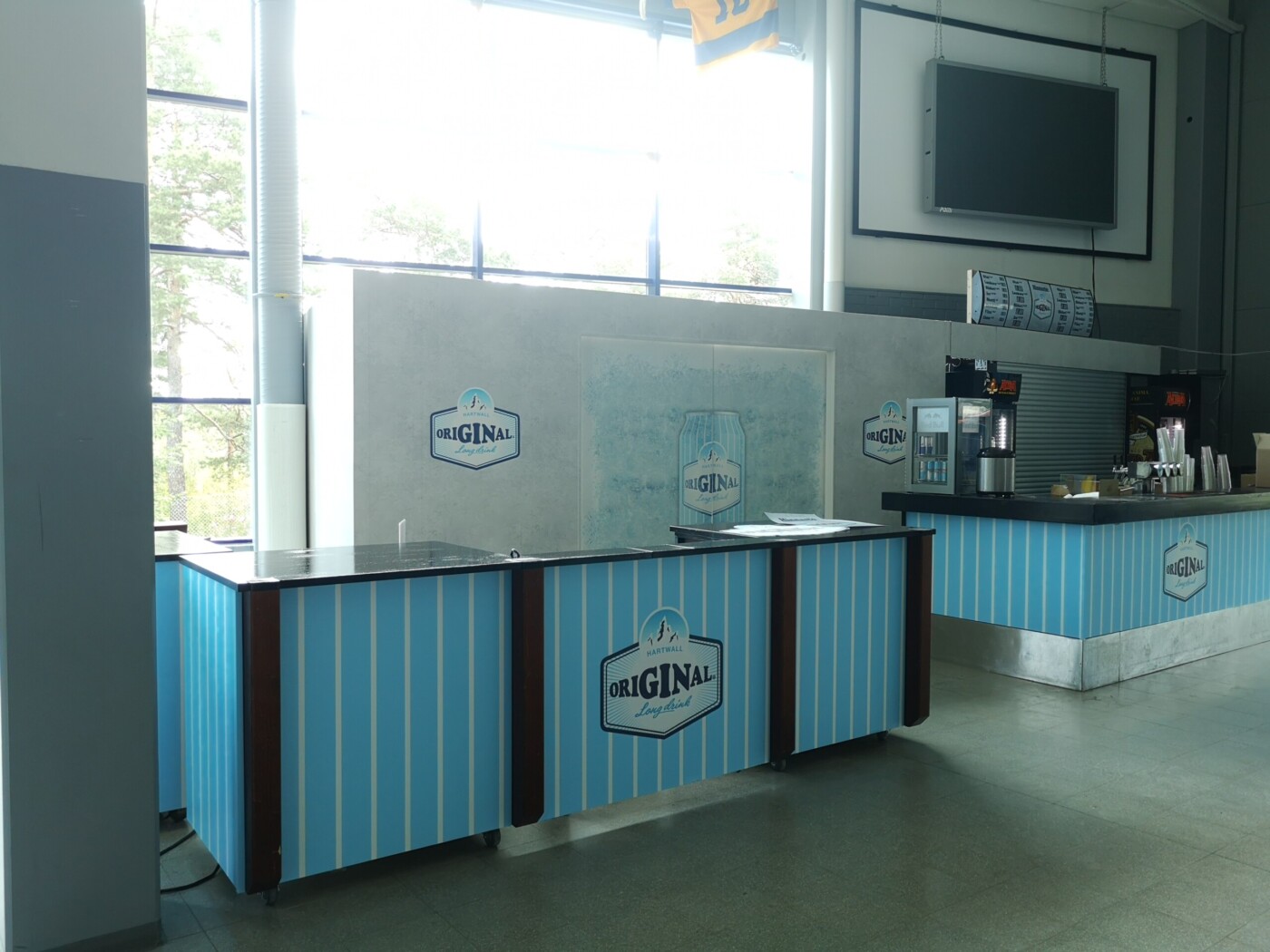Päätyravintola brändättiin Hartwall:in legendaarisella tuotteella Original Long Drinkillä paremmin tunnettuna sinä ainoana oikeana lonkerona. Ravintola sai ilmeensä lonkeron omasta brändimaailmasta. Tunnistettava raitakuviointi jatkuu läpi koko ravintolatiskin missään katkeamatta. Tässä nähdään myös miten eri materiaaleja yhdistelemällä saadaan loistava kokonaisuus. Värit säilyvät samoina vaikka materiaalit vaihtuvat seinäteipistä tapettiin ja takaisin.